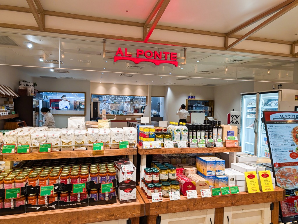 このプロムナードを歩いていると、左手には厨房の様子が見えるライブキッチンがあり、右手には魅力的な商品がずらりと並んでいます。お店で作っている様子やスタッフの活気が直接伝わってくるこの「ライブ感」が、お買い物のテンションをぐっと引き上げてくれます。